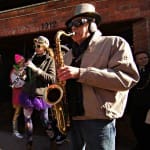Mardi Gras has made a name for itself as the most colorful time of year in Downtown Lawrence, and this year’s holiday was no different. The parade, spearheaded by Truckstop Honeymoon’s Mike and Katie West, seems to grow a little larger (and a little longer) every year. The vibrant affair kicked off at Aimee’s Coffeehouse on Tuesday, but changed routes right away and landed the band at the very fitting Jazz – A Louisiana Kitchen (a business new to the Downtown area last year).
