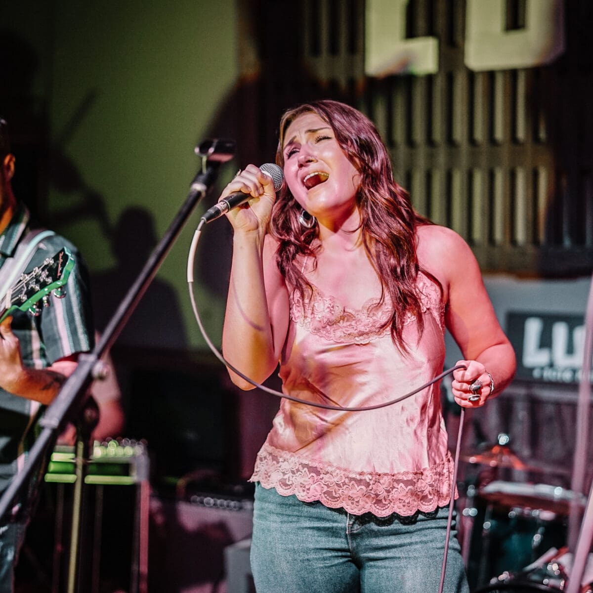 There’s a new crop of young artists in the scene making a return to old (like, old) country music while turning the genre on its head at the same time. One of the bands leading that charge is Lauren Lovelle and the Midnight Spliffs. This band is so delightful, we had to see them twice this weekend (once at the Replay on Friday, and another time at Lucia on Saturday). Each time, the lineup was different. But both times, they were ear candy for Loretta-Lynn-era honky tonk and outlaw country. They were joined on this night by Kansas City’s Jass, who we could have sworn hasn’t been back to Lawrence in about a year. The wait paid off, as Jass delivered an energized set that ended in an enthusiastic sing-a-long (and flute stuff!). Liney Blu is one of the more talented songwriters on the scene, putting together an all-star act of locals who give us beautiful rhythms and heartbreaking lyrics about gender exploration and the like. Liney Blu tends to perform just as much solo as they do with the band, and we refuse to pick which version we love more because somehow, the mood is always just right when they hit the stage.