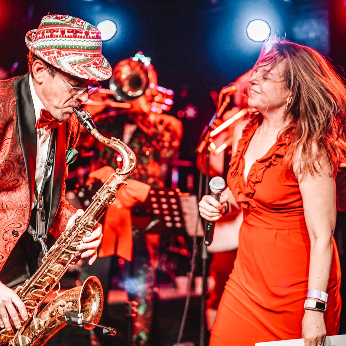 The Dead Bettys is one Lawrence’s newest bands, but is already making a ska-lossal entrance (sorry, we had to, it’s the ska way). When they decided to throw a holiday show (and Just Food benefit) at the Bottleneck on Saturday night, we were pleasantly surprised to see the place packed so hard, it may have nearly sold out. We’ve never seen a holiday-themed show with so many Christmas decorations. They were scattered everywhere, leaving barely enough room for the fans to pick it up.
