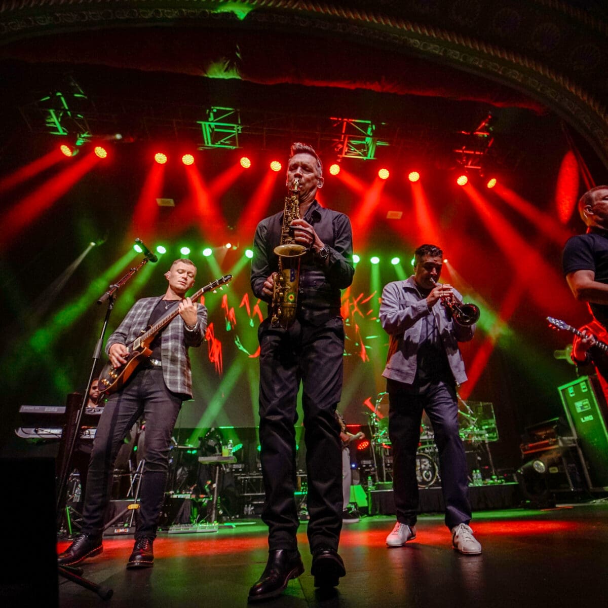 The Uptown might have been the most diverse room in Kansas City on Tuesday night. UB40 may be an English reggae band, but they attract fans from all over the world. The band’s lineup has represented a range of ethnicities over the years (with musicians sporting English, Welsh, Irish, Jamaican, Scottish, and Yemeni backgrounds), and they’ve truly found a place toeing the line between world music and pop music. We sat next to someone from Mauritius (look it up), and there were sooooo many Jamaicans in the house. Though they’ve had a bit of a rotating cast, and more recently performing with vocalist Matt Doyle, the band was celebrating their longevity with this tour as they entered their 45th as a musical group. Despite their fans getting a little up there in age, they barreled to the front to dance the night away (security was asked to encourage the fans to stand and dance, despite it being a seated show), showing their decades-long dedication by singing along all the words.